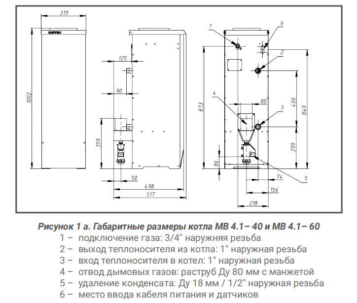 Технические характеристики газового котла GEFFEN MB 4.1-60