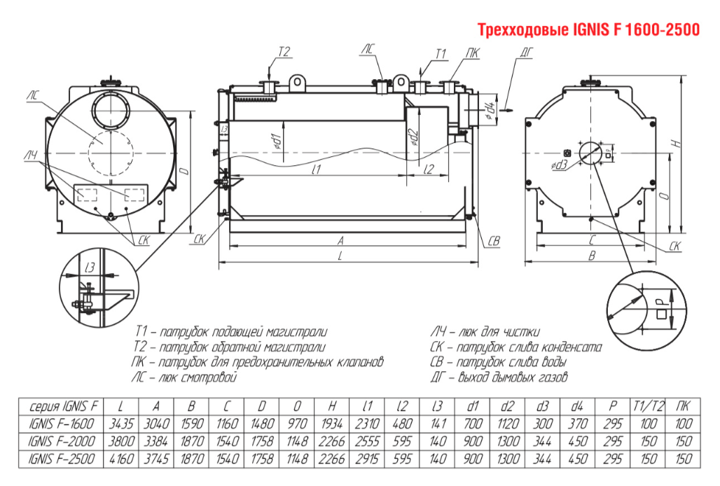 Технические характеристики водогрейного трёхходового котла ARCUS IGNIS F-2000
