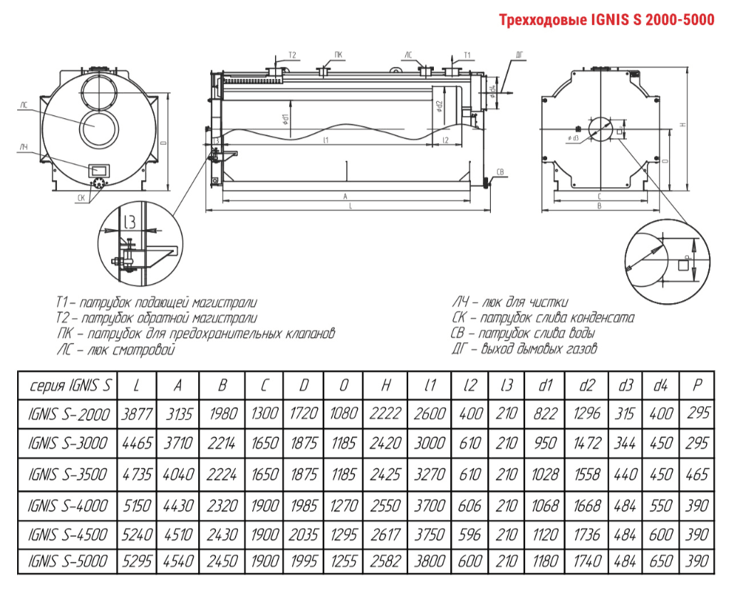 Технические характеристики водогрейного трёхходового котла ARCUS IGNIS S-3500