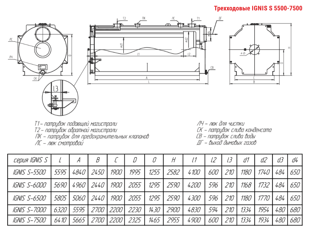 Технические характеристики водогрейного трёхходового котла ARCUS IGNIS S-7000